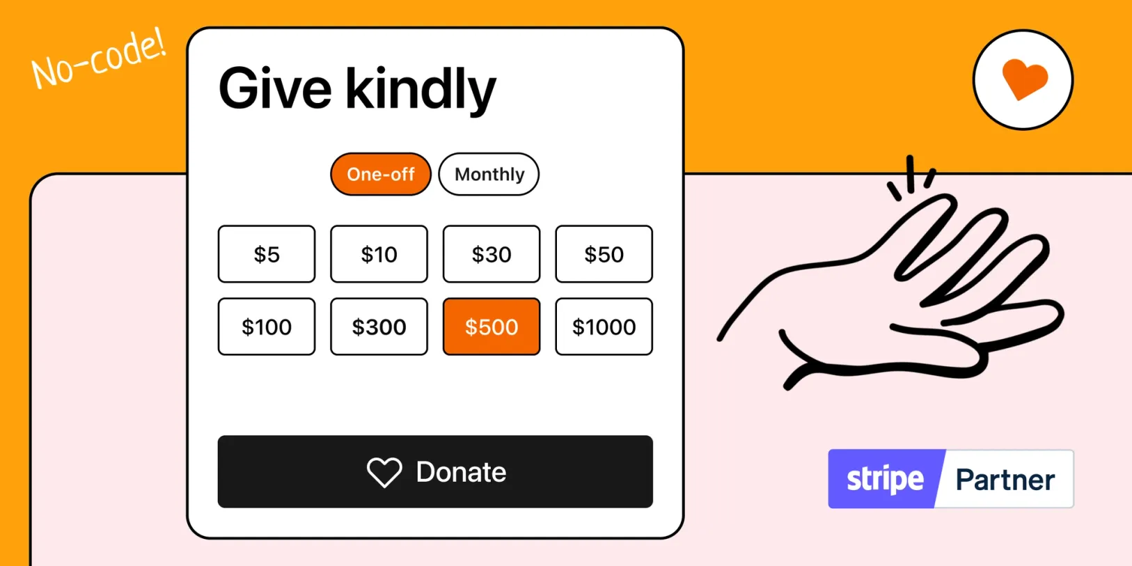 This article explores the no-code ways nonprofits and charities can accept donations with Stripe. With Checkout Page, you don't need to know any code to start collecting donations online with a Stripe account.