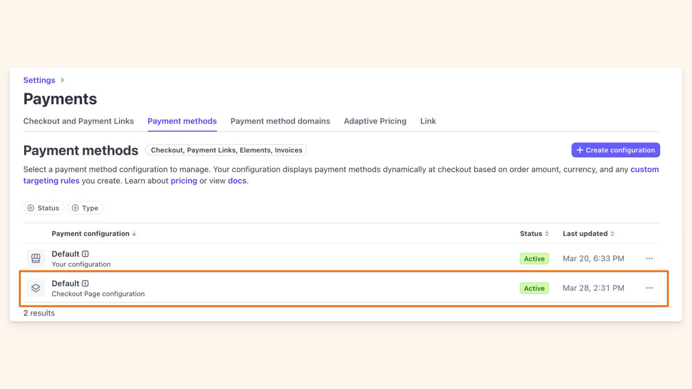 - Navigate to Checkout, then Payment methods