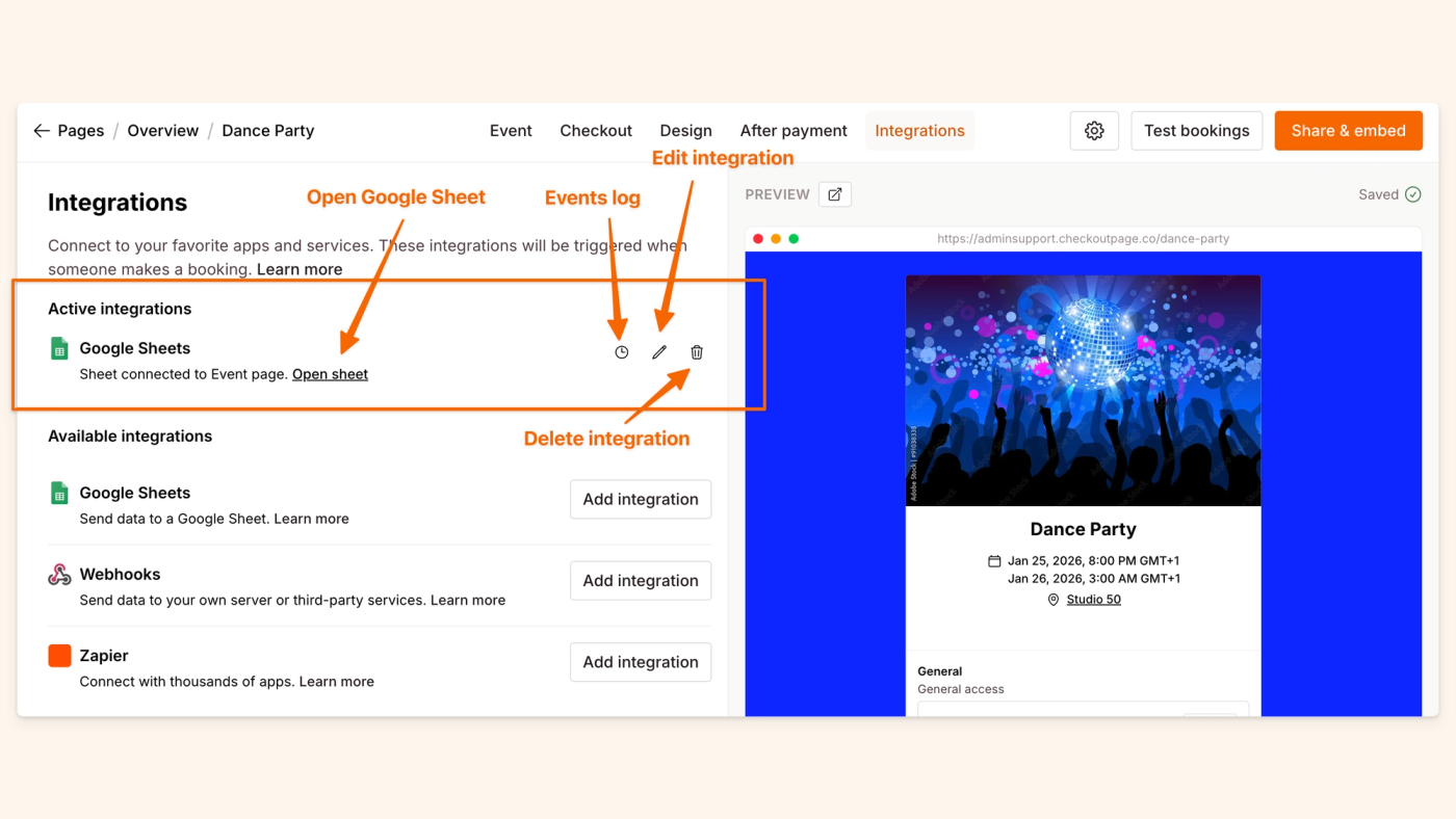 Connect your event page with Google Sheets