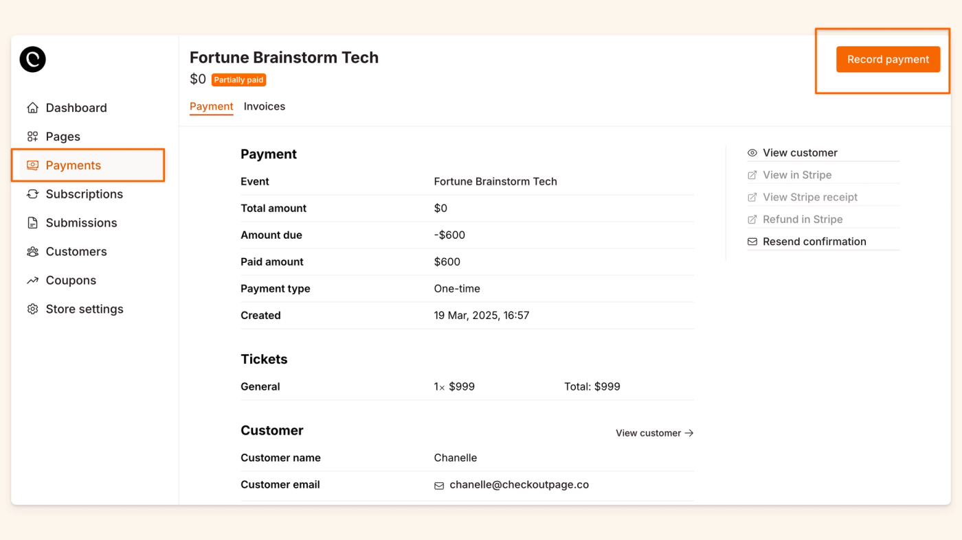 - Click Record Payment.