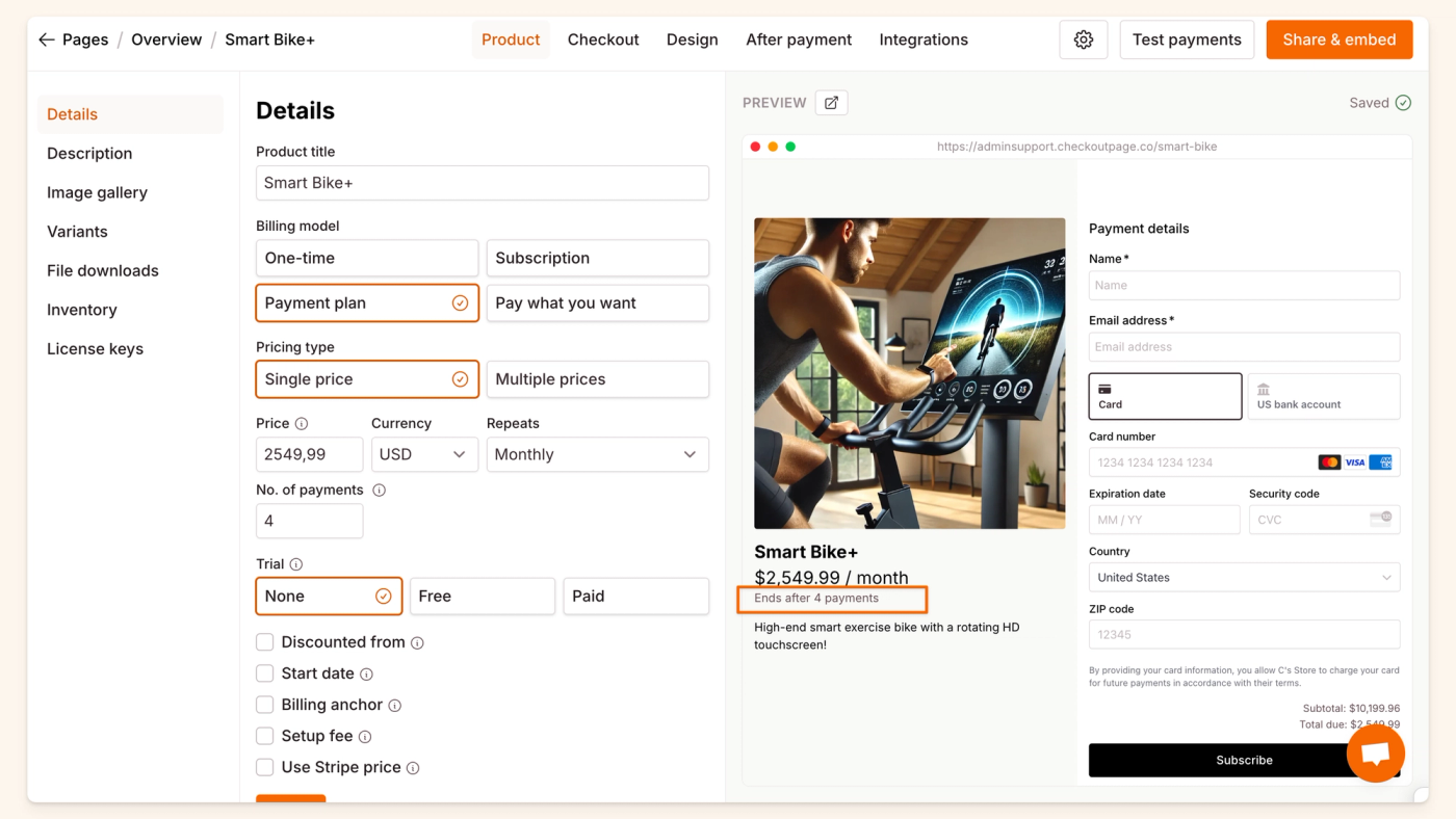 9. Now you’ve created a one page checkout with a payment plan!