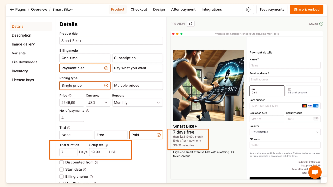 If you choose to add a paid trial, the setup price will become the trial price.