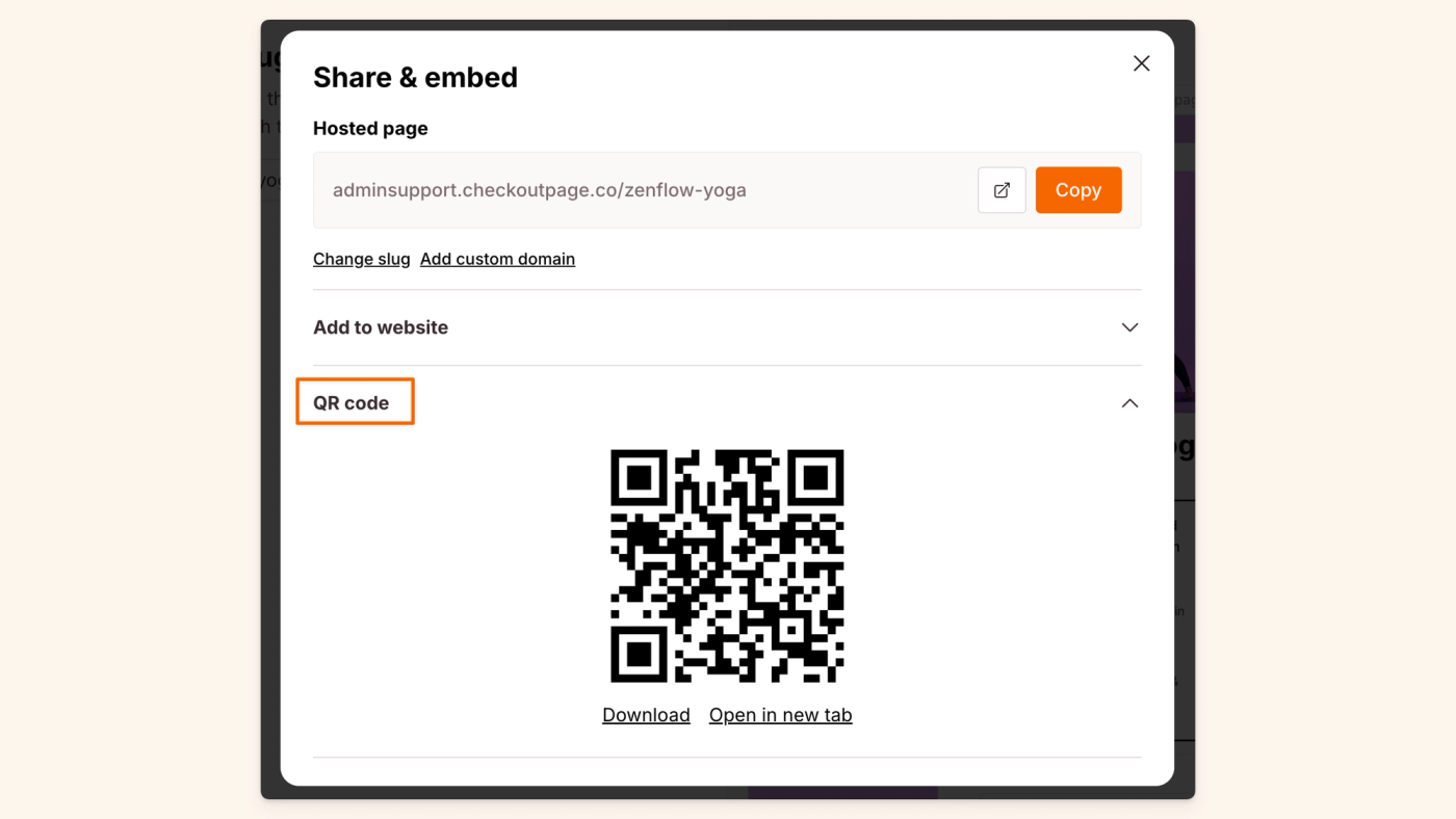 Learn how you can use QR codes to share your page with your customers, which they can checkout from whether they’re buying digital products, subscriptions, or event tickets.